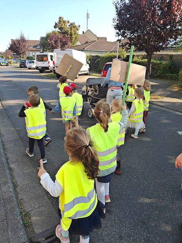 Um die Kinderrechte wieder in Erinnerung zu rufen und bei Kindern sowie Eltern zu festigen, gab es zum Beispiel in einer Kindertageseinrichtung eine Demonstration, an dem die Kinder mit viel Lärm, Lieder und Transparente zum Thema „Rechte der Kinder“ der Nachbarschaft präsentiert haben.