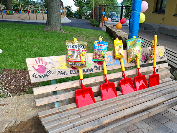 Eis und Kuchen durften an so einem besonderen Tag natürlich auch nicht fehlen. Die Kinder und Erzieher finden den Garten sehr schön und sind froh, diesen nun endlich nutzen zu dürfen.