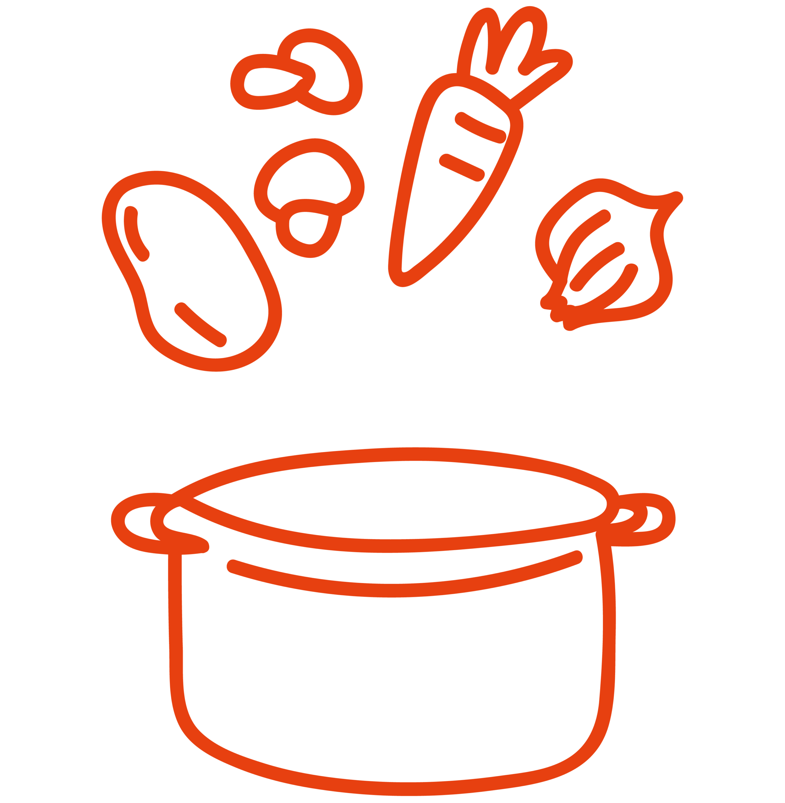 Die Kinder stärken sich in ihren Gruppen mit einem frisch gekochten Mittagessen.