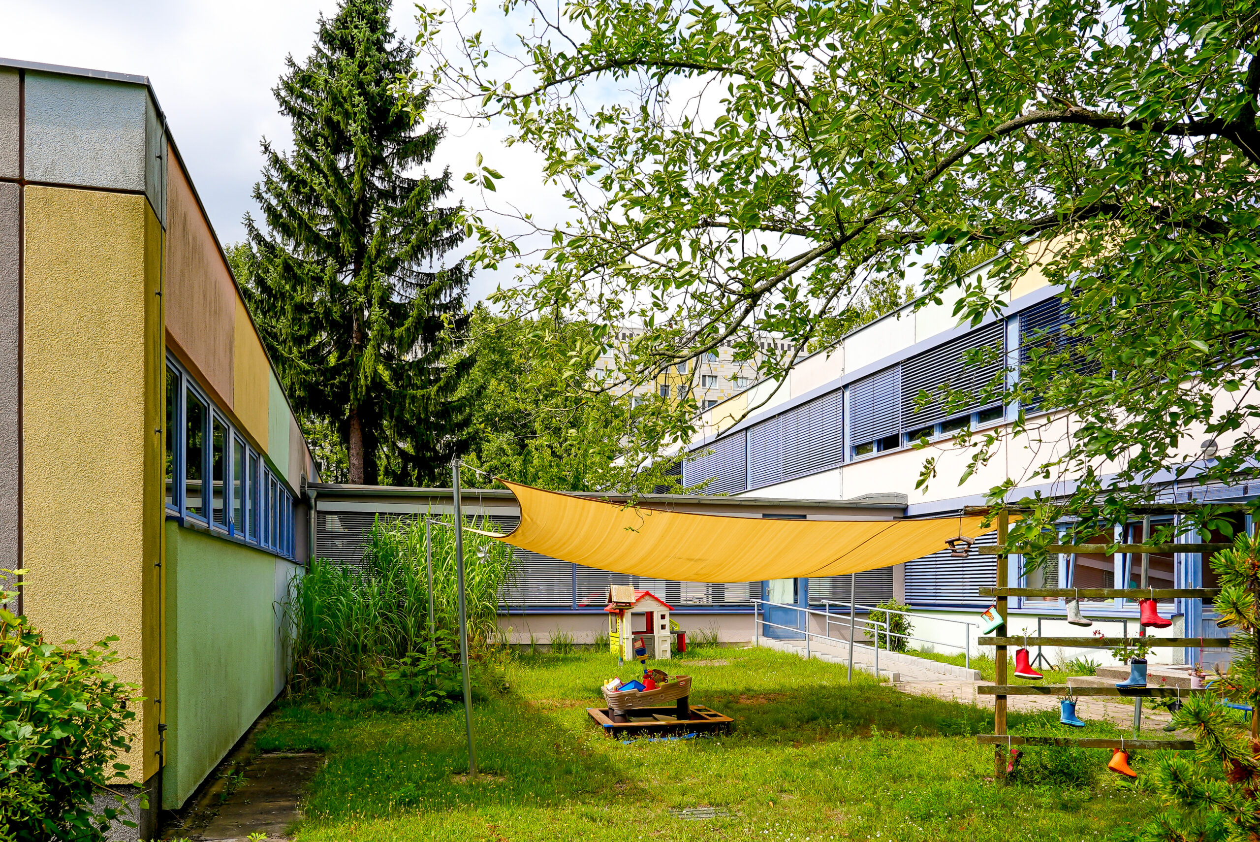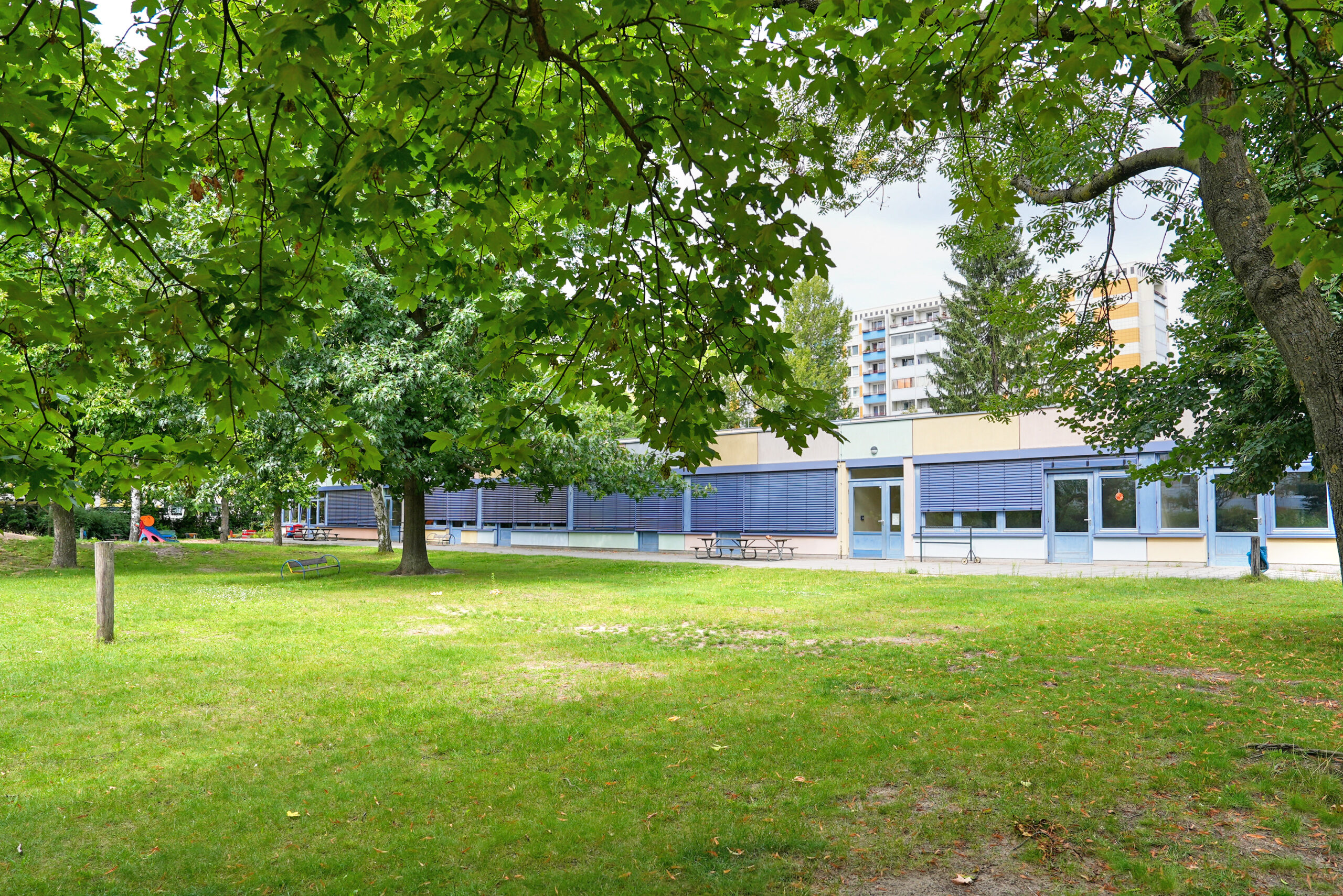 Unsere großzügigen Außenanlagen bieten viel Platz zum Spielen und Entdecken.