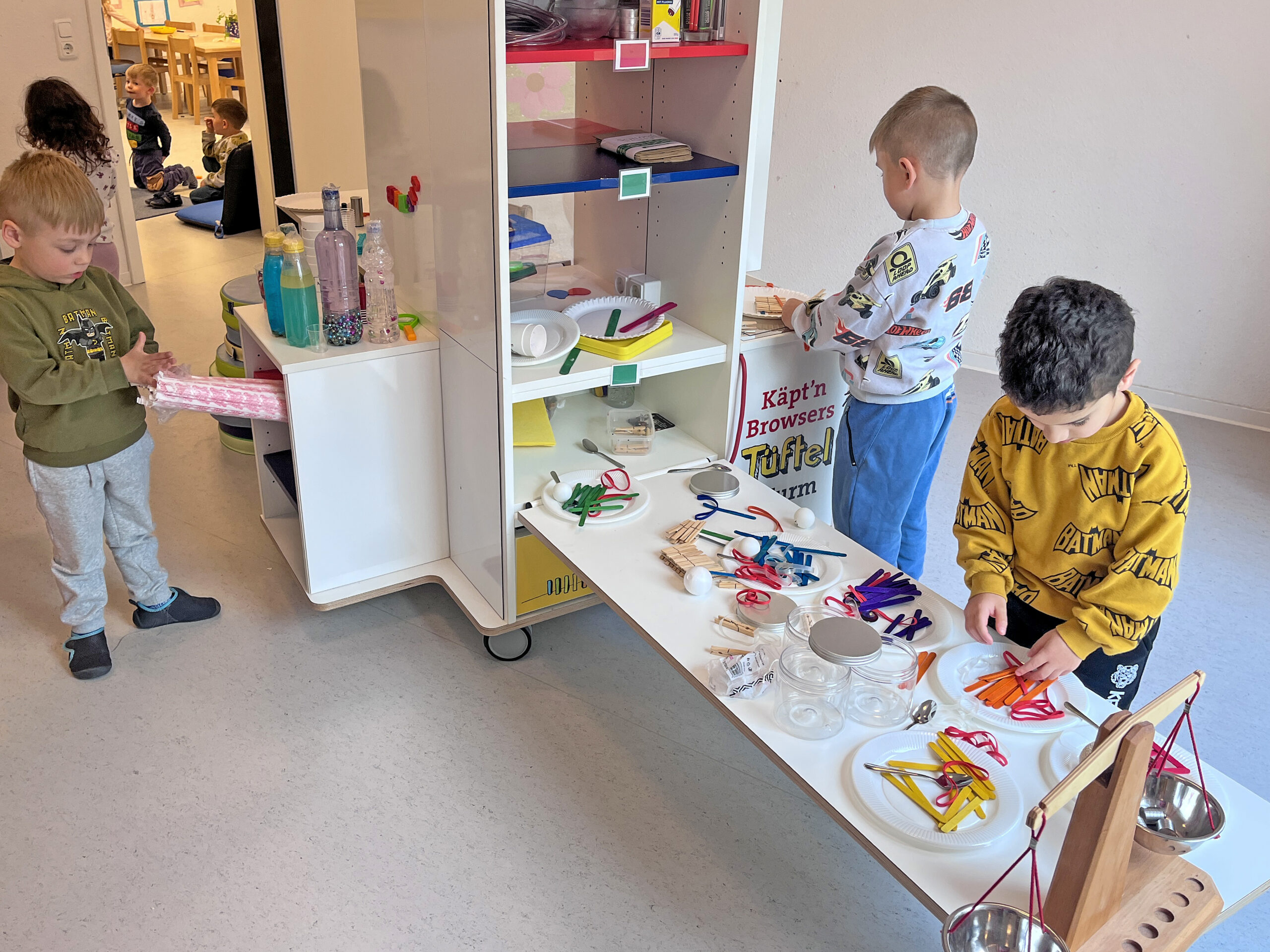 Die Kinder starten ihren Tag mit freiem Spielen und spannenden Entdeckungen, so können sie in Ruhe ankommen.