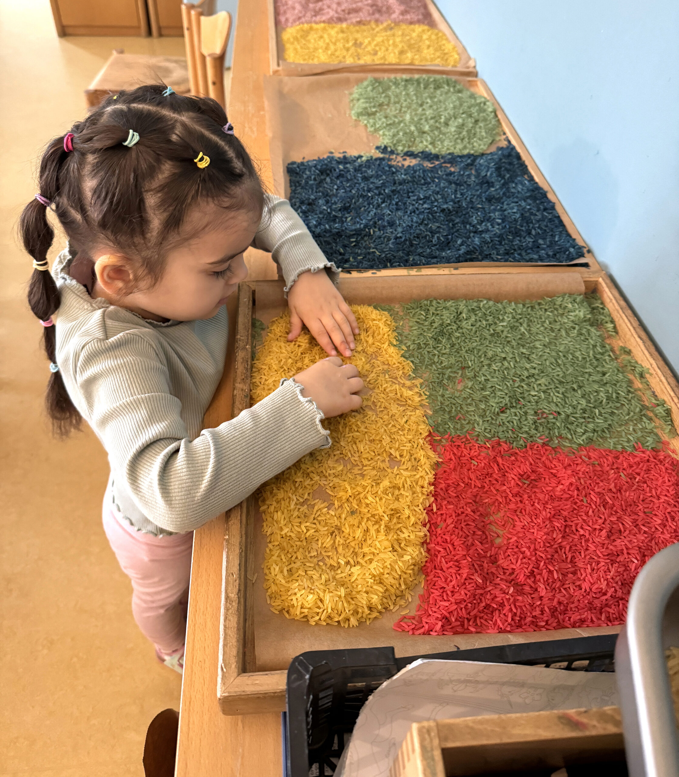 Die Kinder starten ihren Tag mit freiem Spielen und spannenden Entdeckungen, so können sie in Ruhe ankommen.