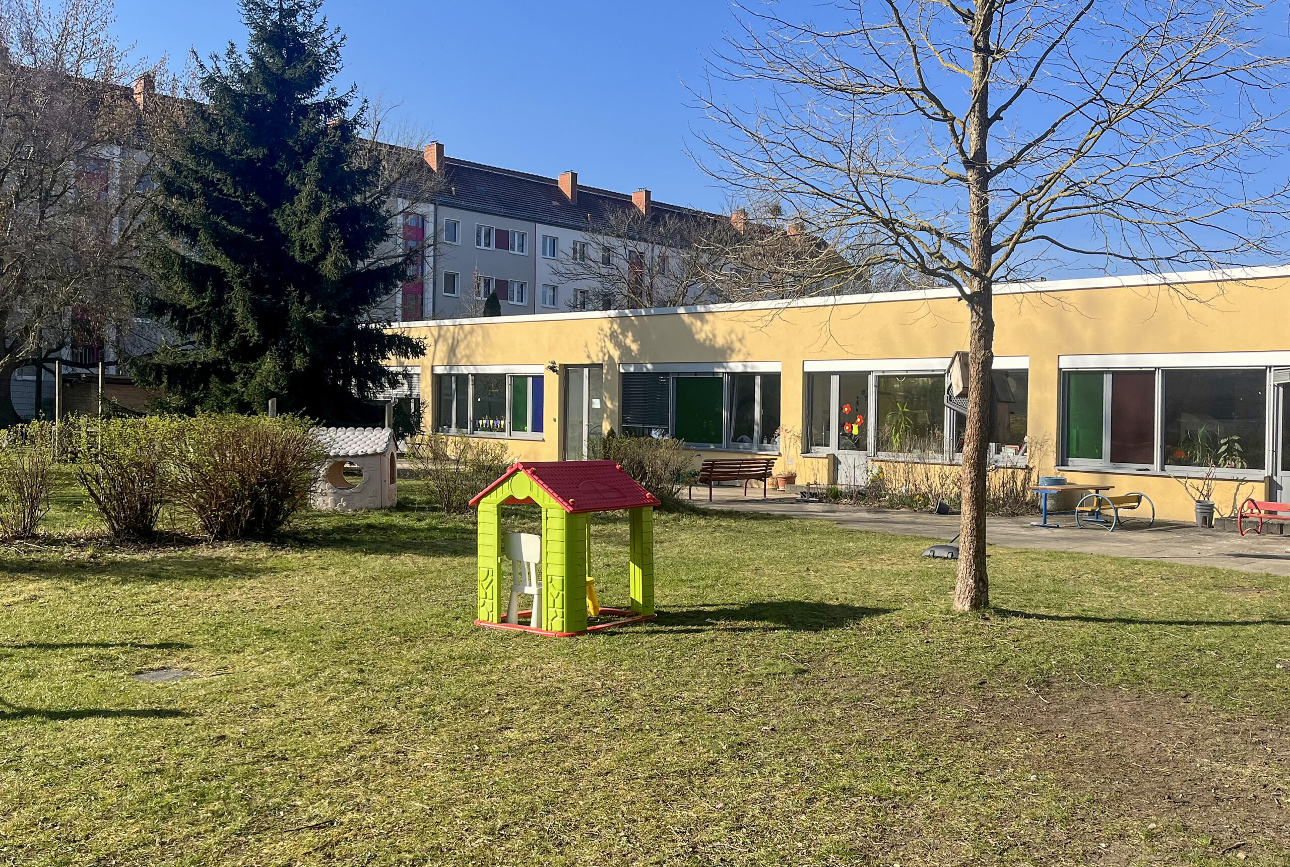 Unsere großzügigen Außenanlagen bieten viel Platz zum Spielen und Entdecken.