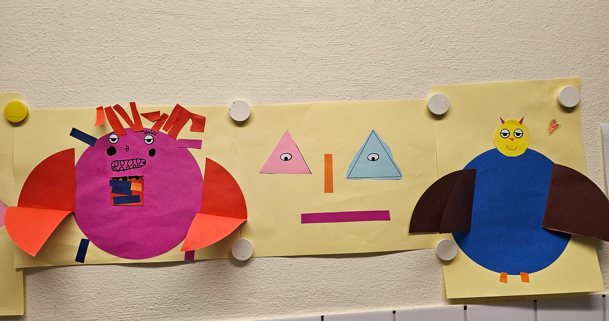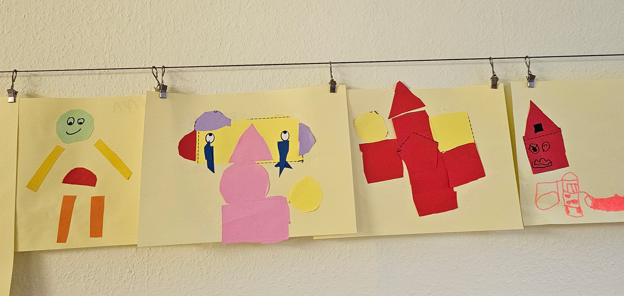 Wir haben nicht nur die Formenkenntnisse erweitert, sondern auch die Orientierung auf der Fläche: oben/unten, überlappend, nebeneinander
